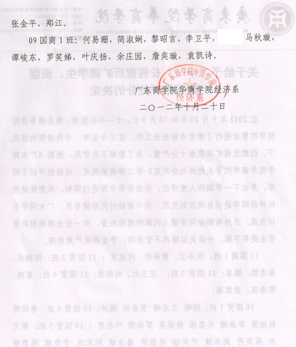 上一条:2012-2013学年上学期10月给予黄文杰等五位同学处分公告 下一条:广东商学院华商学院学士学位管理实施细则(试行)20110831