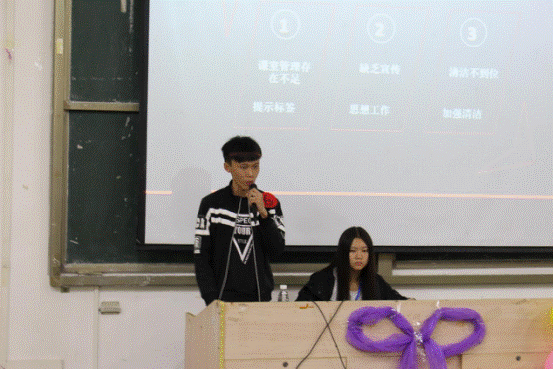 首先是第一组上台演讲,关于“教室垃圾何去何从”为话题进行探究,视频中从校园中的各个方面入手,采访了学生等各个不同主体,分析学生乱扔垃圾是由于自身素质不高和法律不完善导致的。接下来的第二组以“谁是对你影响最大的人”为话题进行探究,她因一张新生报道的图片中感悟出从出生到现在所认识的人在微不足道改变自己,促使自己成长。第三组是以“学校现阶段的公共设施问题”为话题进行探究,她以诙谐的语言分享了自己的经历,引发大家的共鸣与思考,并且希望通过公众号宣传改变现状。 中场休息的抽奖环节更是把大赛推向了高潮,通过面对面建群,发红包抽取幸运观众,使观众踊跃参与,大赛现场气氛活跃,观众热情高涨。