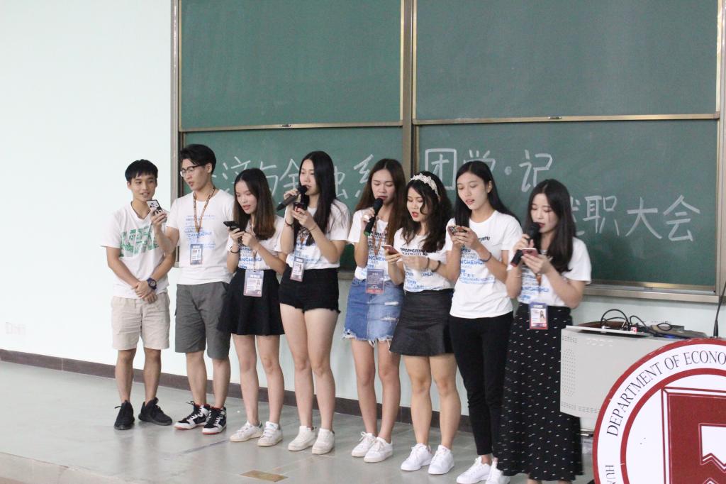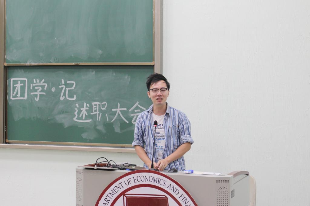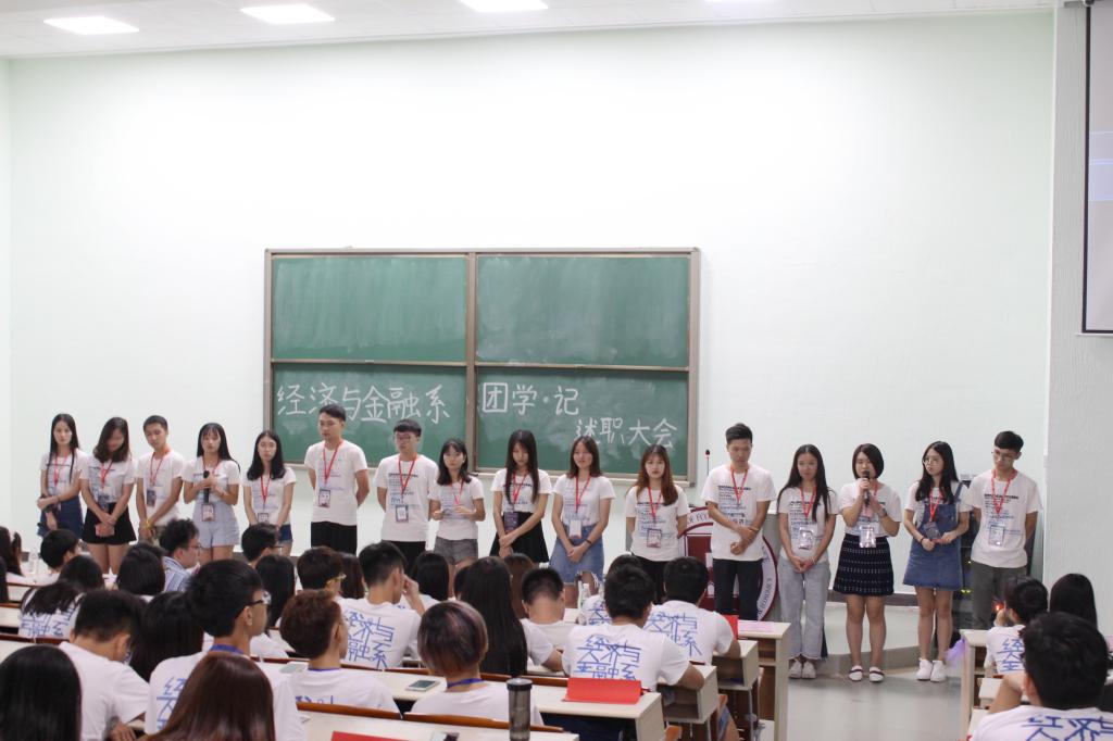 在朝气蓬勃的开学季里,新的血液不断注入,让人关注;而在过去的一学年里,我系各个组织部门的奉献也是不容忽视的。为此,我系于2017年9月8日晚18点30分在励志楼b407举行了团学记述职大会。莅临本次大会的嘉宾有经济与金融系团总支书记宋元跃老师,团总支副书记张慧卿,吴玮根,学生会主席陈翠婷,副主席潘紫清,黄胤霖,记者团团长葛燕子,副团长章伟颜,詹蓉,以及团学记各部门的部长和干事。