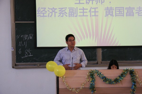 14点30分大会正式开始。本次大会分为“文明纪律”和“防火防盗”两部分。首先由经济系副主任黄国富老师发言。国富老师列举了师兄师姐走向成功的经历,强调了我们为什么要读书。最后,国富老师讲到学风问题,要求同学们以身作则,带领班上的同学搞好学习氛围。国富老师关于纪律的演讲完毕后,紧接着的大会的下半场以安全为主。“防火防盗”这部分的主讲师是经济系艺术团导师黄素贞老师。素贞老师在防火方面提醒大家在宿舍若要使用大功率电器要注意安全。在其他方面素贞老师为同学们总结了一些盗、骗、抢的常见案例,还介绍了一些基本的法律常识。大会最后由王德高教授发言,教授对前两位老师的发言总结表示赞同,同时还补充了饮食安全方面的知识。会议在主任的总结词下顺利结束。