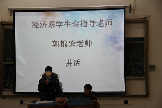 2012年2月28日下午于励志楼D208召开安全教育暨干部培训大会。出席本次大会的嘉宾有经济系主任王德高教授、学工助理黄国富老师、10级辅导员郭锦荣、11级辅导员黄素贞,以及学生会和团总支的干部、干事们,班级干部等。
