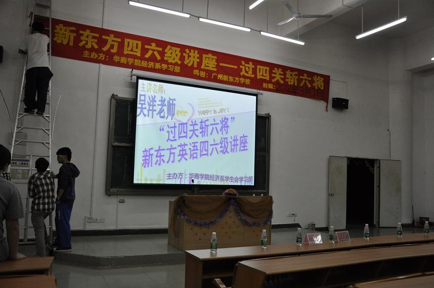 2012年3月7日晚上7:30,由华商学院经济系学生会学习部主办的一场新东方吴洋老师主讲的英语四六级讲座在励志楼C308拉开序幕。