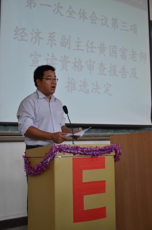 2012年9月18日下午2时许,经济系第五届双代会于励志楼B208隆重召开,到场的嘉宾有王德高主任、黄国富、叶桂华、杨思佳、郭锦荣、黄秋铭、黄素贞老师。