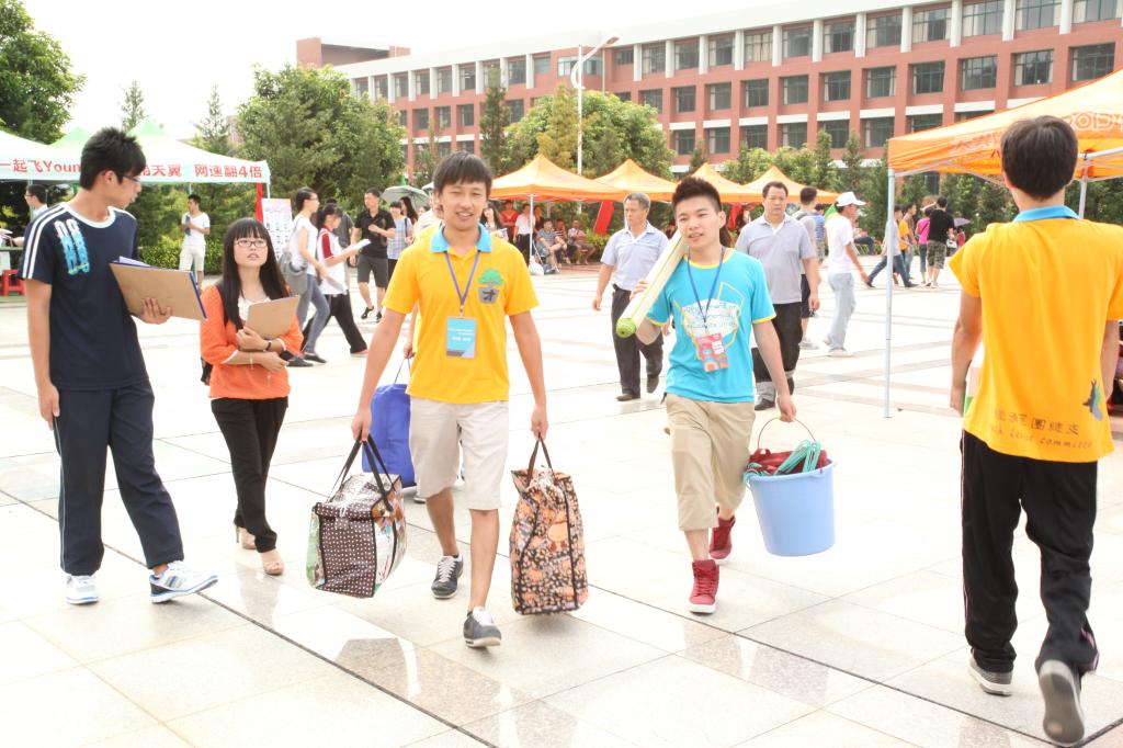 2012年9月7号上午7点,在中央图书馆右侧经济系迎新工作全面展开。迎新工作主要分成签到组、引领组,运输组、行李组,每个组都安排志愿者或者团总支和学生会各个部门的干事去指导新生去完成相应的流程,他们各司其职,尽职尽责,有的人去大门口接待新生,有的人帮他们照看行李并贴好行李号码牌,有的人帮助他们顺利完成缴费流程,还有的人帮新生搬运沉重的行李,运输组的志愿者是最辛苦的,把一些新生的行李搬到六、七楼都没有表现出丝毫的不满。在报到程序中,我们还设立了助学贷款咨询处,为有需要的新生提供帮助作为学长学姐的各位志愿者在热心工作的同时,还热情为新生解疑答惑,介绍学习经验和一些军训的注意事项,学长学姐们热情和笑容,让学弟学妹们感受到经济系就是一个充满温暖的、和蔼的大家庭,同时也赢得他们对我们工作的认可和配合。