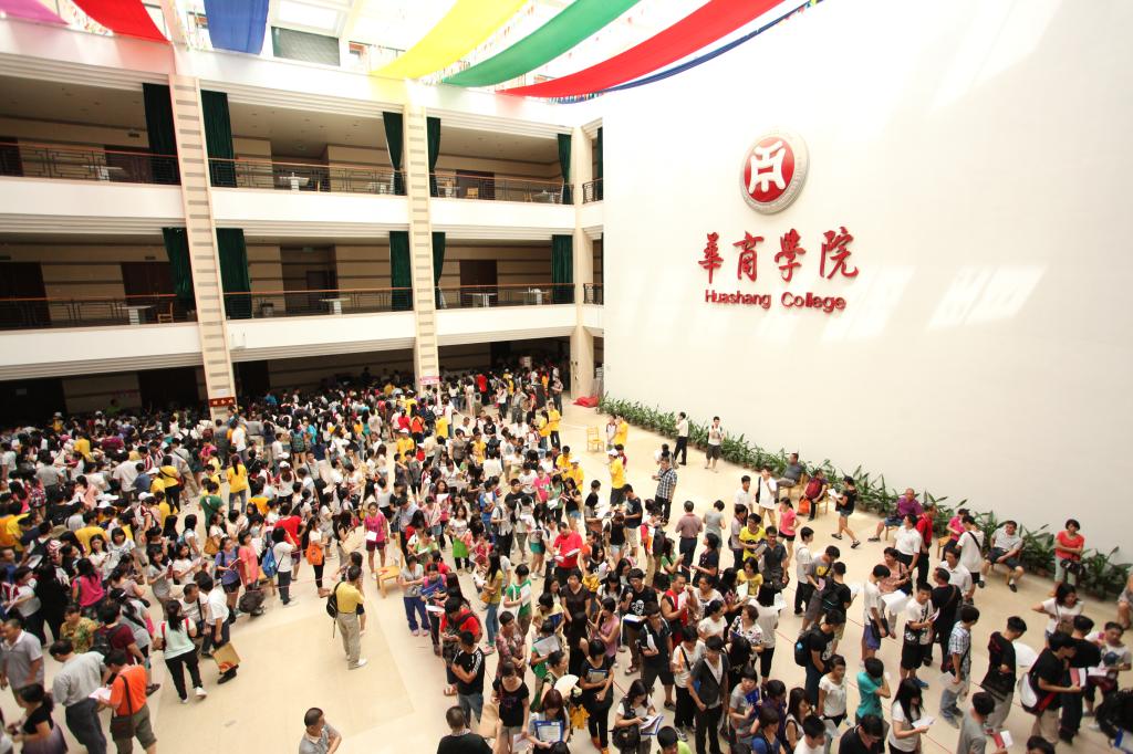 2012年9月7日、8日,广东商学院华商学院迎新工作全面展开,一批批全新面孔将要在华商校园迎来自己人生的新篇章。七时许,图书馆外各系大本营、图书馆内新生办理报到手续的工作点也已经布置好,工作人员和穿黄色衣服的志愿者们蓄势待发。