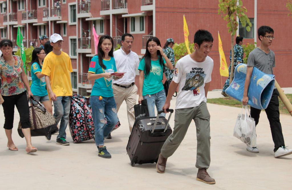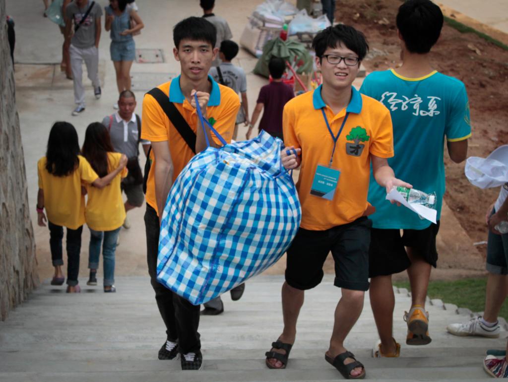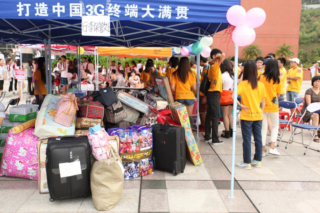 十时许,华商迎新到达高峰期。大本营、图书馆里、宿舍楼下如火如荼,老师、工作人员、志愿者应接不暇。注册、托运行李、找宿舍,都在工作人员和师兄师姐们的一条龙服务下井然有序开展。