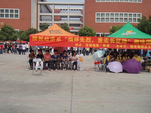 2011年4月26日下午,经济系团总支“缅怀先烈,重走长征路”趣味团日活动在我校篮球场拉开了序幕。“重走长征路” 由团总支组织部策划并组织,旨在以创意新颖的方式向同学介绍长征的历史,通过模仿长征途中重大历史事件,让同学们在其中体会“红色征程”的艰难险阻,从而感悟红军长征精神,铭记历史,激励同学们不断努力前进。