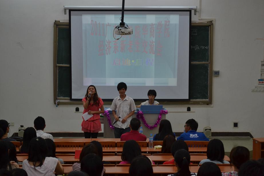 2011年9月7日晚上7:30分在励志楼A208,经济系学生会主办了2011年广东商学院华商学院的新旧生交流见面会。出席今天晚上交流会的主要有11届国贸一、二、三班的同学、11届辅导员黄素贞老师、和经济系学生会的成员。
