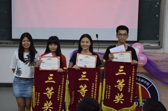 获得最佳人气奖、最佳设计奖和最佳创意奖的分别是:14国商班,13金工6班和13金工2班,由记者团团长林嘉诚师兄和书记助理郑思琦师姐为他们颁奖。