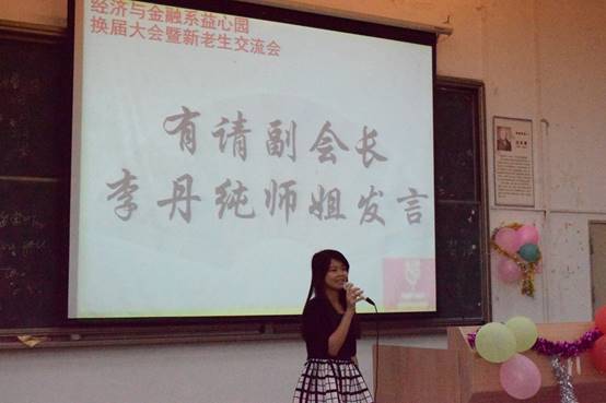 2015年10月13日中午12:30,经济与金融系益心园换届大会暨新老生见面会在励志楼B307举行。
