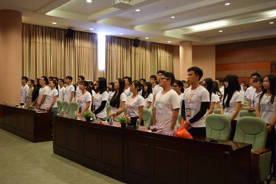 培训大会在团歌的奏唱中拉开了序幕。首先是由系团学副主席兼记者团副团长王洁婉师姐简单介绍各级领导老师以及我系组织架构,同时师姐也着重强调了礼貌问题并以她个人经历为例使我们认识到了礼貌的重要性。