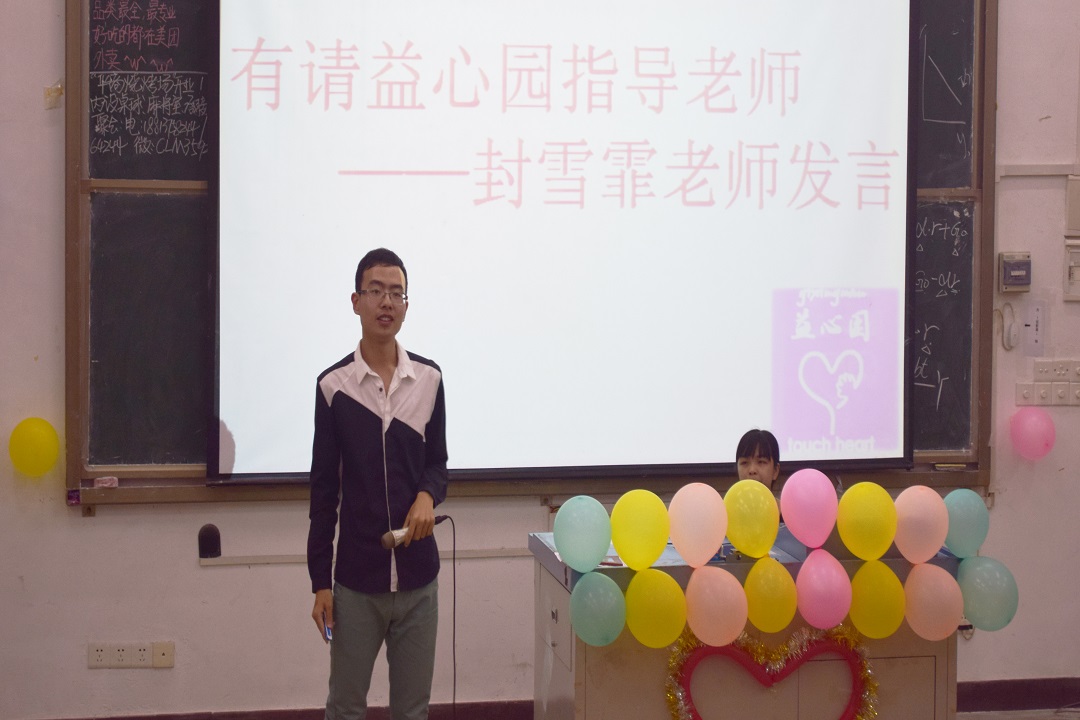 我系益心园副会长温昌明师兄在热烈的掌声中向心理委员们提出深深的期望并鼓励他们要勇于承担起肩上的重任,谨记“为同学服务”的宗旨,助人自助,在付出的同时也会得到意外的收获,何乐而不为呢?
