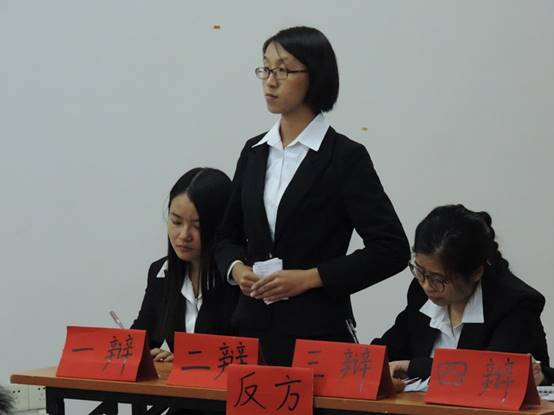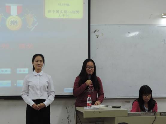 国贸3(正方四辩)杨珊珊、金工3(反方三辩)黄河