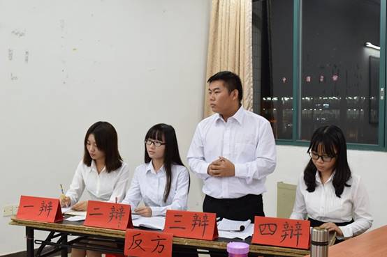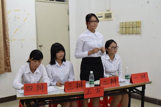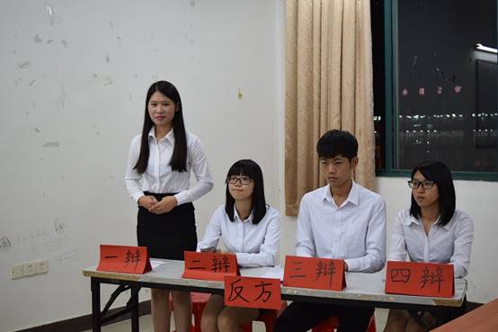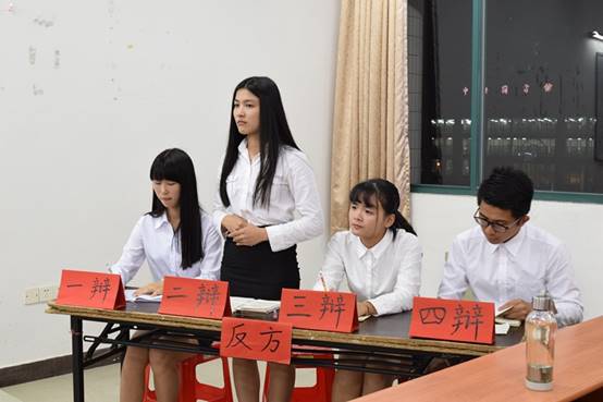 国贸1(正方一辩)钟威玲、统计班(反方三辩)郑惠