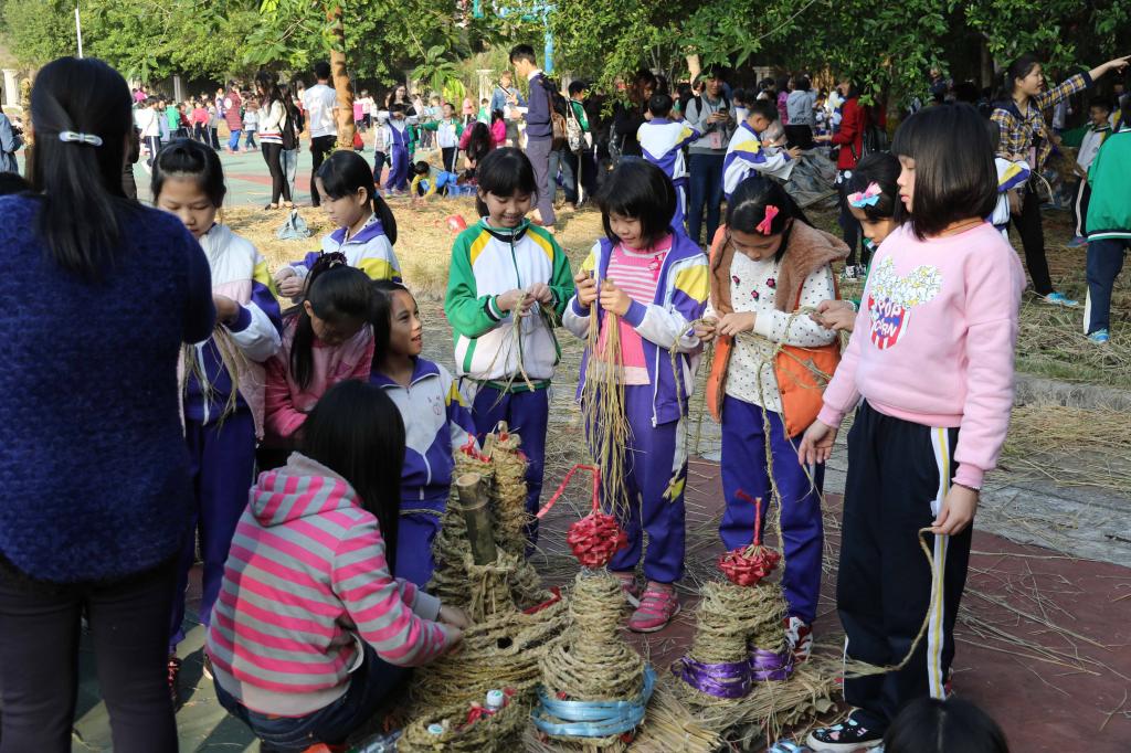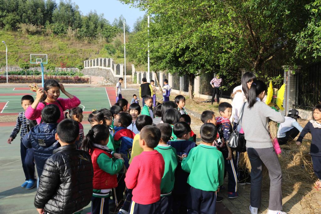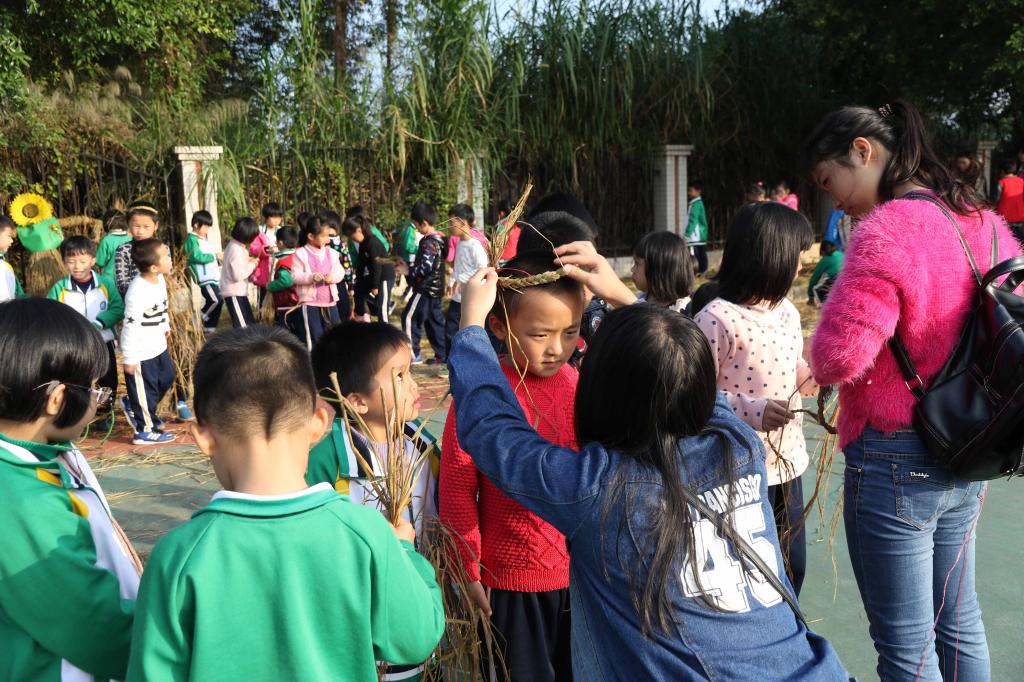 下课铃声敲碎了校园的宁静,我们可爱的小朋友下课了,小编看到了他们几乎是飞奔着来到操场的。到达现场后,小朋友开心的欢呼,他们为哥哥姐姐们的精心制作的稻草作品感到惊奇,他们到处摸摸看看,他们与漂亮的稻草作品合影留念,他们与义教的哥哥姐姐亲密互动。他们在这个甜蜜的稻草梦里,完成了他们与志愿者们共同的童年梦。