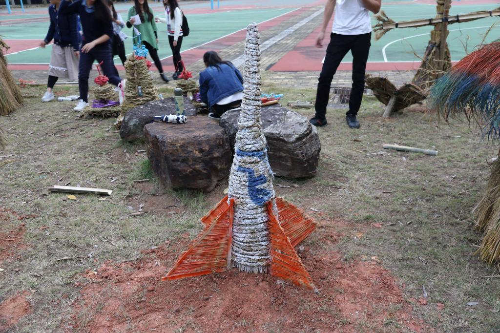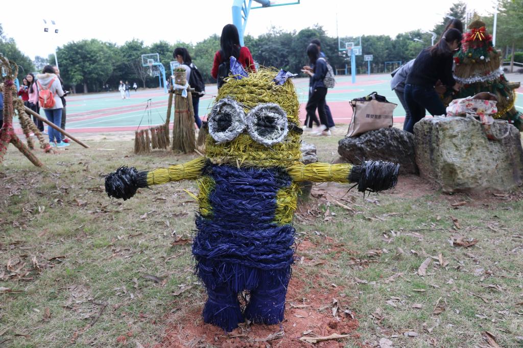 可爱的小黄人,应景的圣诞树,好吃的糖葫芦,旋转木马,公园里的秋千,稻草屋,冲天火箭,你可能无法这些都是用稻草制作而成的,我们的志愿者到底有多厉害,他们的想象力有多丰富,他们的动手能力有多强,我想这些超能力,都是来源于他们对小朋友的爱,小朋友的世界,是奇妙无比的,而这些也正在悄悄感染着我们的志愿者。