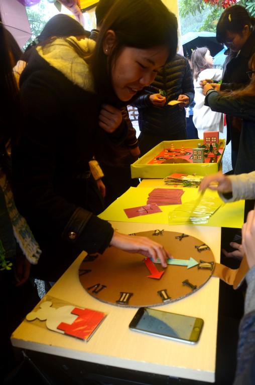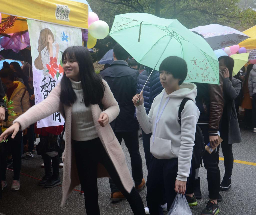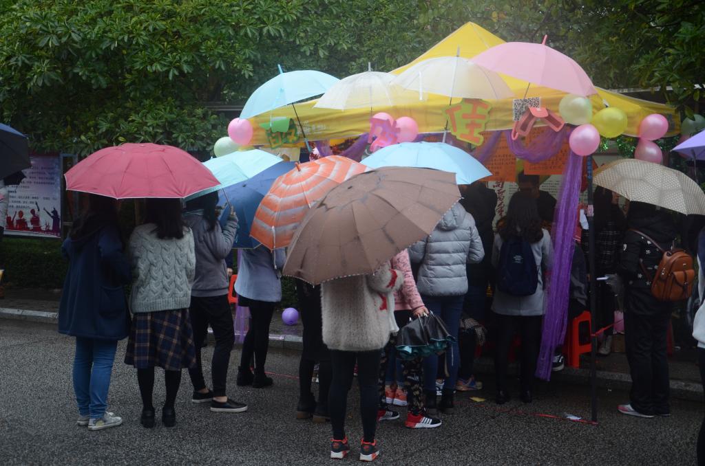 在摊位这里主要有以下的小游戏:百鸟归巢,一“肖”千金,梦寐以“球”,返老“环”童。同学们的积极参与和小伙伴们的耐心解答,让明星饭堂这条校道上充满了欢声笑语。特别值得一提的是因为我们经济与金融系比较“任性“,特意准备了丰厚的奖品,“敢赢就敢送”,所以即使是下雨了,也并没有阻挡同学们参与其中的热情。同学们纷纷表示“游戏种类很丰富,奖品丰厚,不仅娱乐身心,也让人备感轻松,真是一个愉快的周末!”
