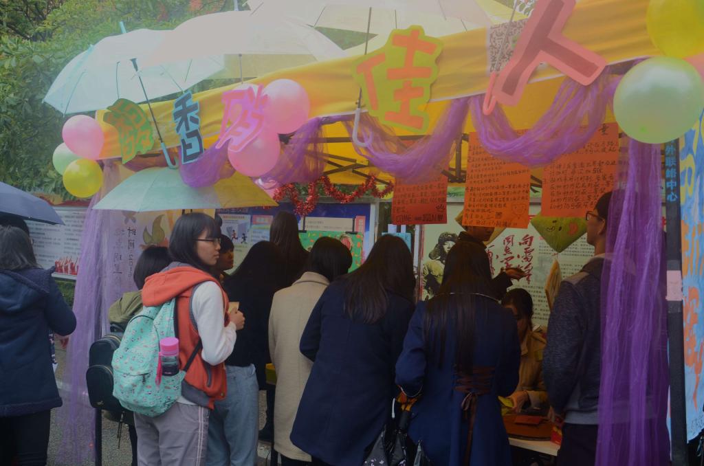 活动中,每个摊位各自以其特有的风格,展示每个年代独有的韵味。其中,经济与金融系学生会生活部以“馥香俏佳人”为主题,让每一个走进摊位的他和她都像是回到8090,在绵雨的午后感受不一样的风景。
