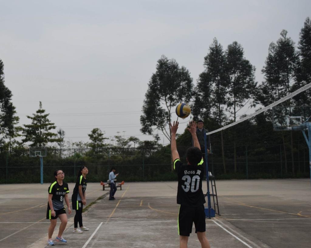 比赛开始,我系球员率先发球,第一球由我系女球员打出,完美的发球,果然还是巾帼不让须眉!小编想当你的小粉丝啊!接下来,双方你来我往,赛况激烈,我系球员采取稳扎稳打的战略,沉着应战。公共管理系则灵活转换战术,双方全力奋战,战火再次升级,时间一分一秒过去了,终于,在上半场,在我系队员的沉稳应战下,取得了上半场的胜利。