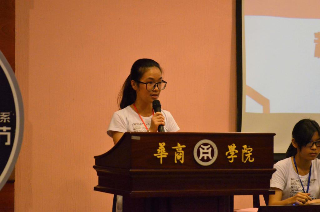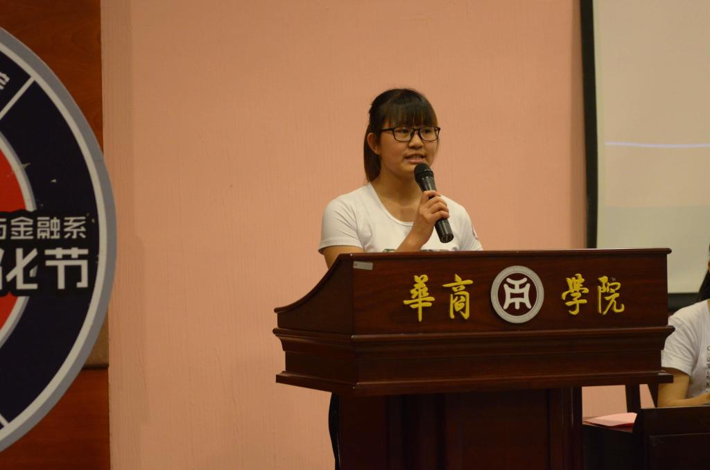 紧接着,院团委副书记刘苗老师在致辞中表示:一个大型的文化活动能成功举办实属不易,经济与金融系第一届班级文化节的成功举办使她对第二届的活动充满期待。她希望这次活动能继续为学子提供展示班级文化的平台,团结广大团员青年参与其中,通过时代性、参与性的班级活动加深广大团员青年对班级的荣誉感,展现华商学子正能量的风貌风采,从而丰富学子在学校的文化生活。