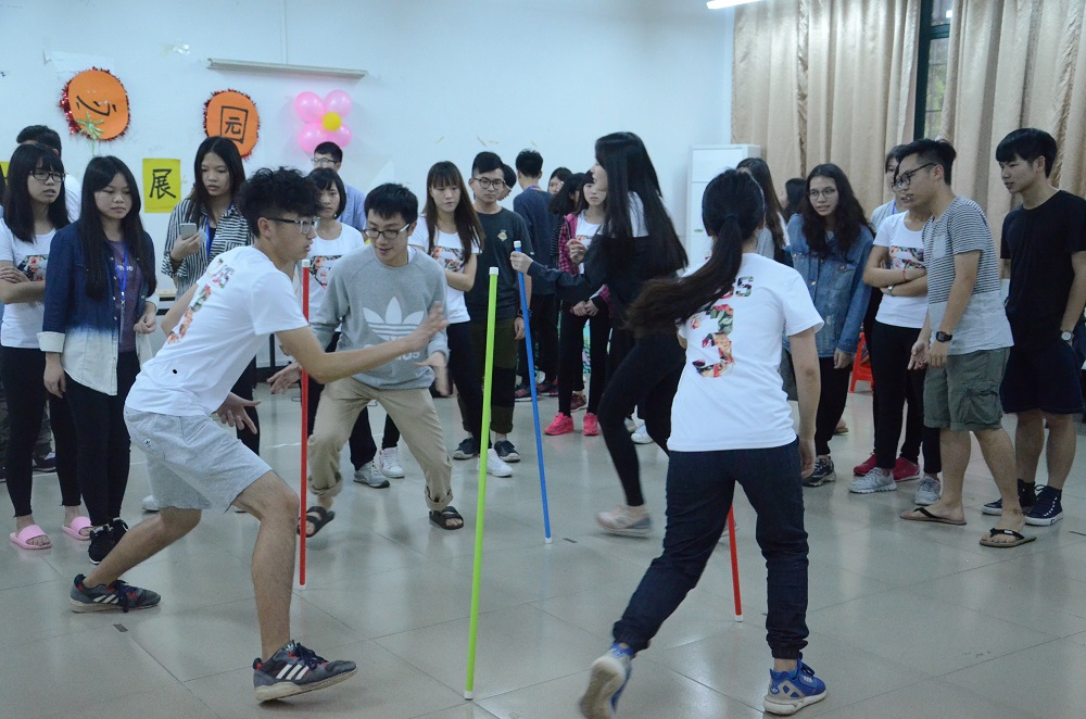 活动一开始,首先由我们的扩展师向我们同学们讲解了此次活动的目的及规则,天气恼人,我们却依旧热情不减,有你们陪我度过的午后,即使是雨天也很美。随后开始我们的破冰游戏,第一个游戏是“定时炸弹”,听到名字就觉得很紧张刺激有没有!同学们通过歌星想与他们相关的歌名,依次往下传,而伴随他们往下传的就是“定时炸弹”——闹钟!同学!“张奕迅”是谁!等等,连“卓依婷”都出来了,我们都是90后吗?哈哈哈,在紧张刺激的游戏中,我们的惩罚也是不容小觑的,边模仿老虎边朗诵“两只老虎”,咦,不是唱“两只老虎”吗?同学们,你们也真是脑洞大开啊!