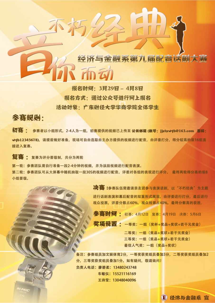 2016年4月19日,经济与金融系文娱部举办的第九届配音话剧大赛在厚德楼c505顺利进行。