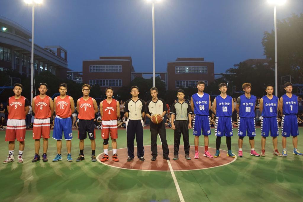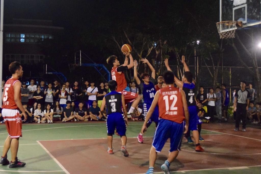 比赛开始,两队队员就猛攻死守。双方你来我往、你投我进、比分僵持不前,随着时间的推移,我系篮球队在完美的配合下连投三分球,将比分渐渐拉开。