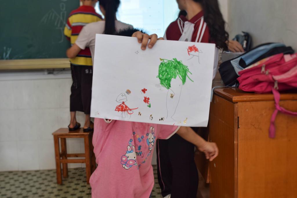 此次活动的主要安排是带领孩子们一起画画,让孩子们在一张白纸上画出属于他们的世界。孩子们的心灵就像一张洁白的纸,纯净地没有一丝杂质。志愿者们耐心的与孩子们一起手把手教他们画画,即使有些孩子有点逃避志愿者,但是志愿者还是一直在孩子们身边帮助他们,慢慢的融入,和他们一起画画和玩耍。