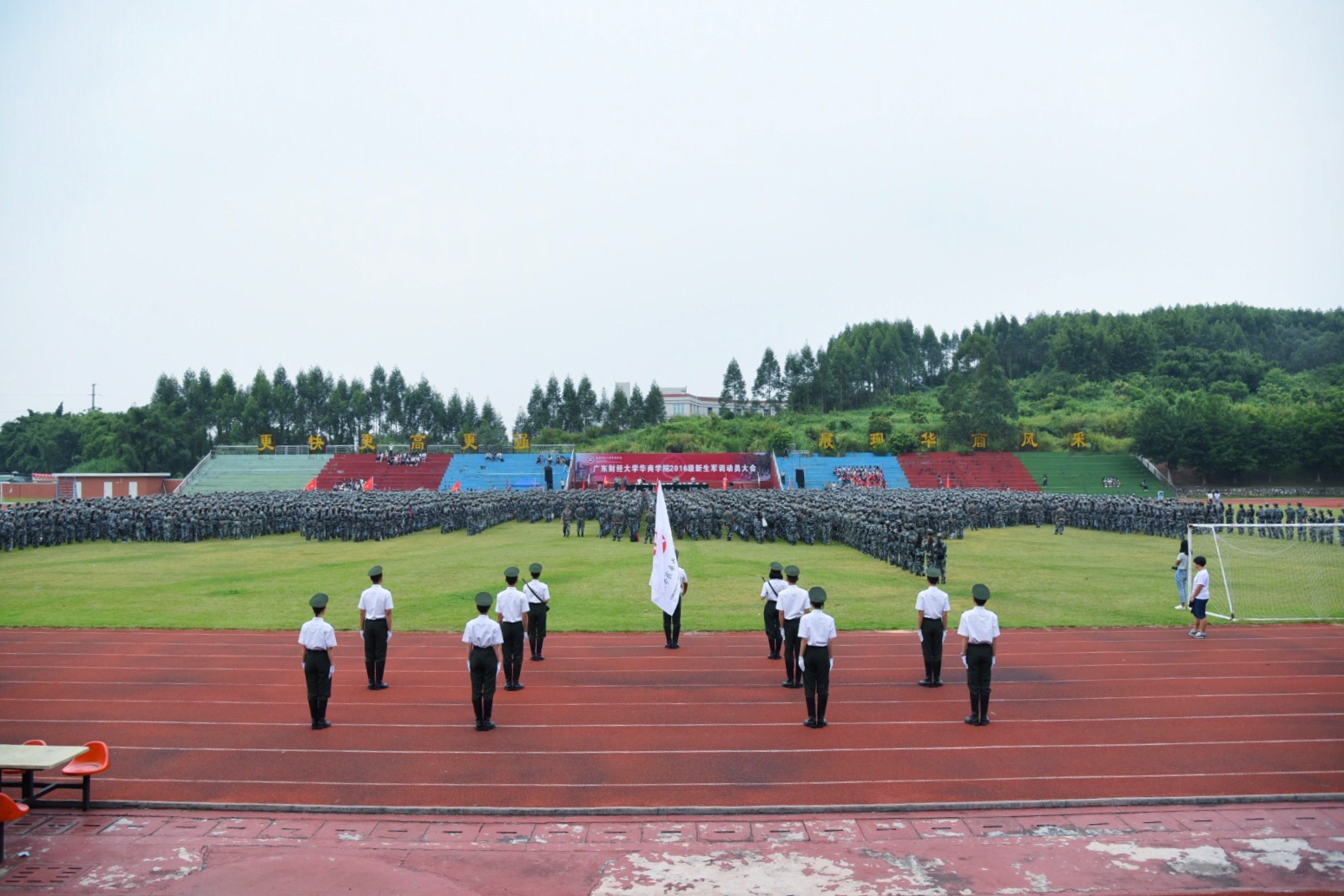 2016年9月20日早上7点30分,华商学院16届新生军训动员大会在足球场隆重举行。