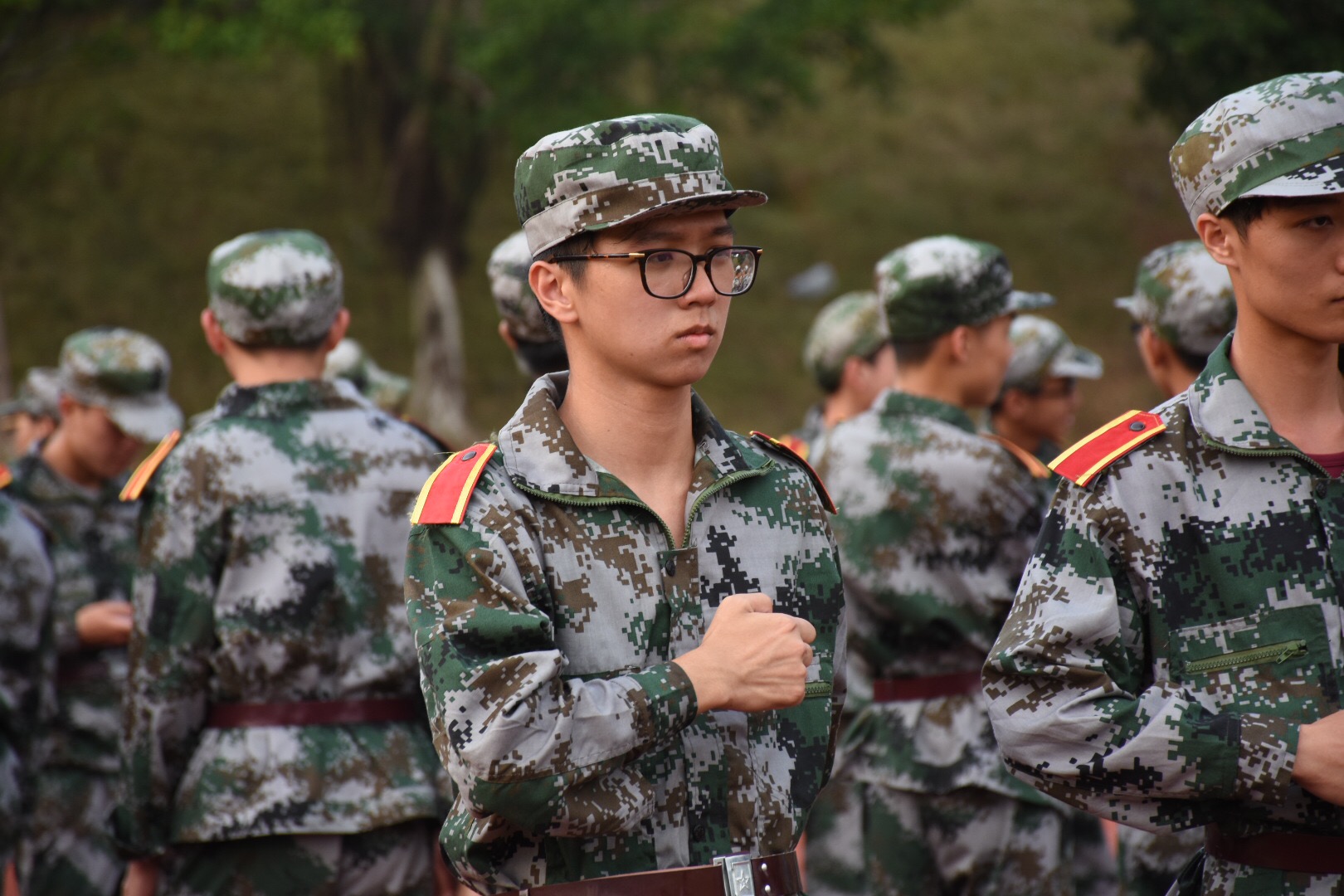 第一天的军训动员大会,仿佛还是在昨天。转眼间,已经是军训的倒数第三天了。从笨拙的立正、稍息、跨立,到整齐的齐步、正步、跑步,从一盘散沙到井井有条,这正是经济与金融系新生的执着,这就是我们傲人的迷彩青春。