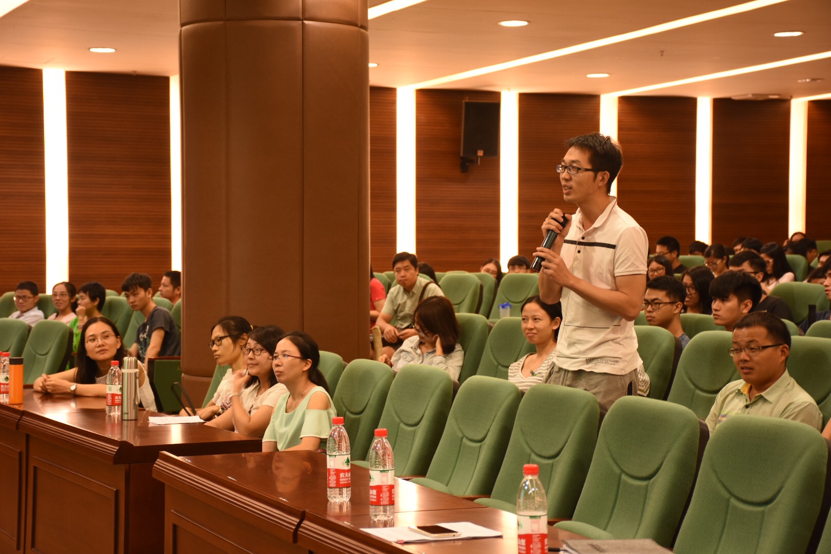 在讲座后半场,张捷教授主要讲了世界经济久病的病根是战后的国际分工结构问题即战后形成的“中心一外围结构”。发达国家处于技术高端中心,发展中国家则是从事低端加工行业。而这一结构则造成了发达国家的产业空心化及全球经济的失衡。世界经济久病难愈,其根源问题涉及多方面全球经济原因,张捷教授希望同学们作为经济与金融系的学生都可以多了解,多涉及。在讲座最后,现场听众也对张捷教授的讲座内容提出了自身的疑问,与张捷教授一起探讨了关于世界经济的创新问题。