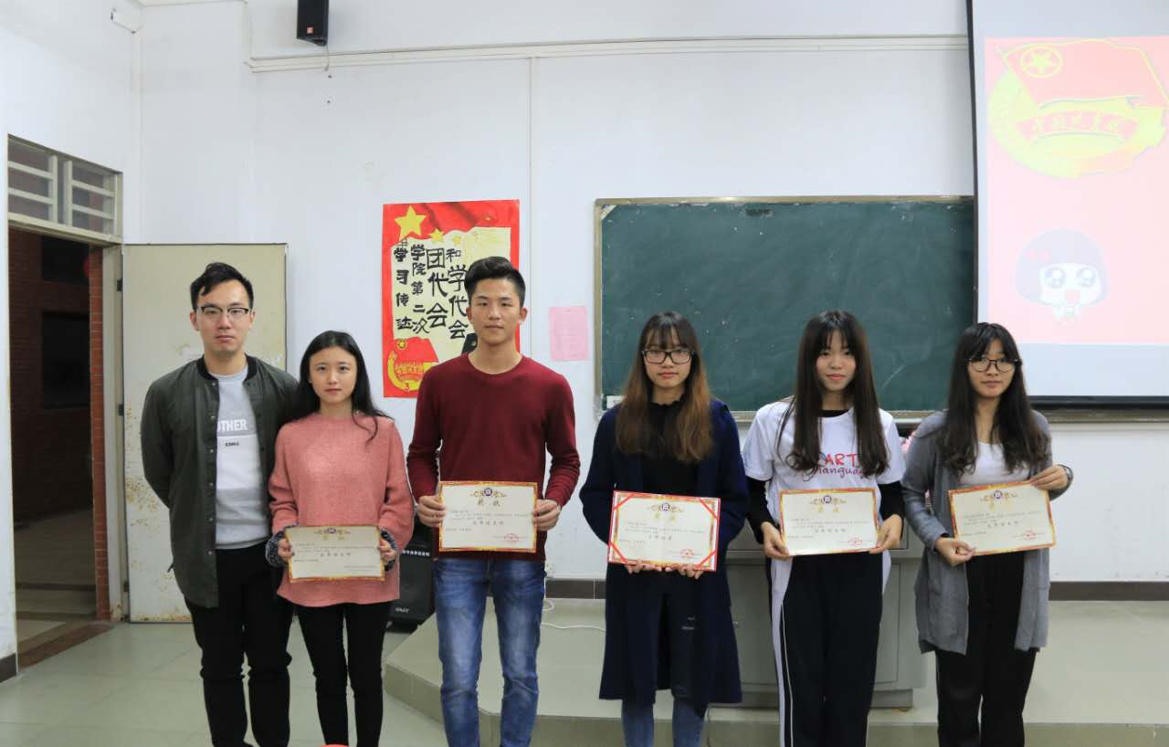 在团支书总结发言后,便是获奖的班级上台领奖。15金工10班荣获王牌销量证书,16金工1班,16金工2班,16金工5班,16国贸4班获得了“优秀团支部称号”,我系团总支书记宋元跃老师为获奖班级代表颁奖。