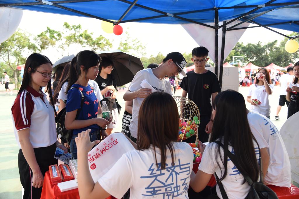 表演进行的同时,各班级的摆摊活动也火热进行中,丰厚的奖品、有趣的游戏不断吸引着同学们流连于一个个摊位中。有的同学满载而归,有的同学蓄势待发,场面十分热闹。
