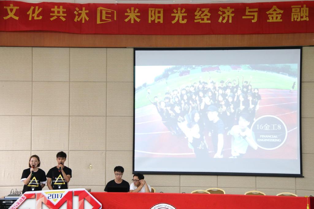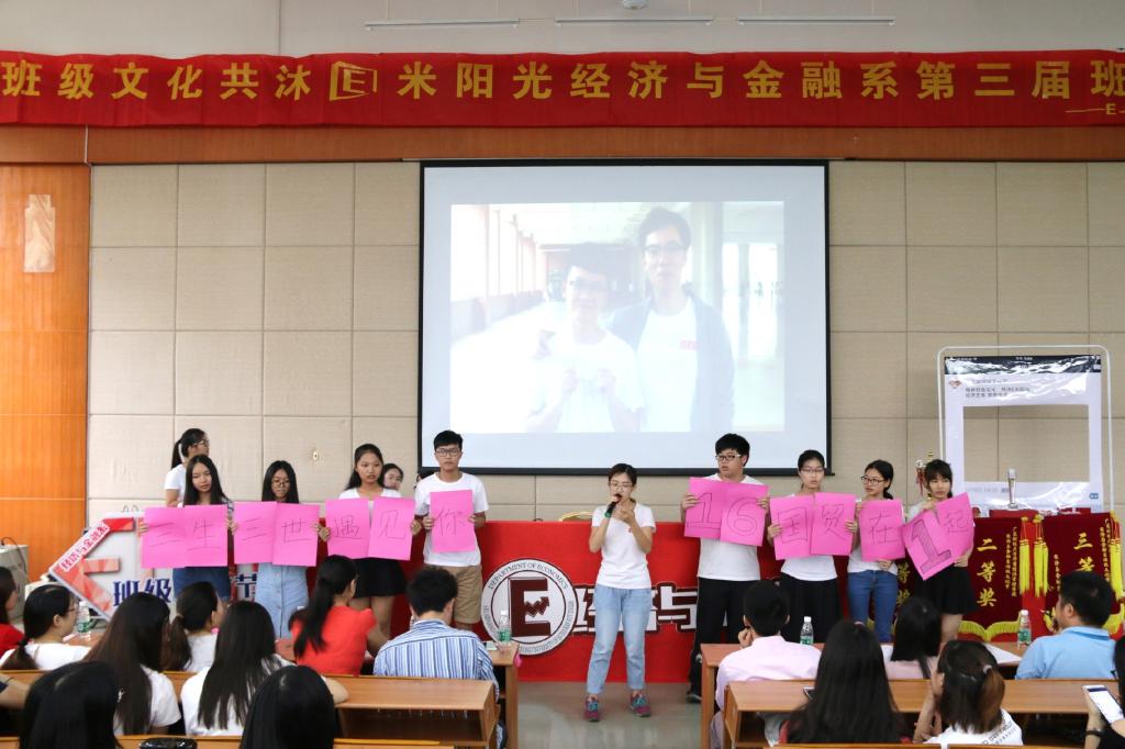 没有在最好的时候遇见,但每一个一起努力拼搏的时光都格外美丽。热烈的现场氛围,每个班级各出奇招,十八个班级,十八般武艺。我们看到的都是飞扬的梦想,燃烧的激情:互相关心,给大家温暖的16金工6,四海八荒,不期而遇的15金工8,励志成为经济系最团结班级的16国贸4,张扬五班个性,涌现国贸激情的16国贸5,挥如鸿,气如雄的16国贸7,遇见欢乐,遇见幸福的16统计,三生三世遇见你,16国贸在1起的16国贸1,时光匆匆,感谢有你的15国贸3,遇见你不后悔的16国贸6,我就是我,不一样烟火的16金工2,长风魄浪,唯我八班的16金工8,遇见自己,激情追梦的15国贸6,我们的心永远不散的15金工2,遇见不说再见的16国商,刚好遇见你的15金工3,以爱之名,绽放激情的15金工11,最美不过遇见你的16金工1,曲终人不散的14国商。我们穿越怎样的人海,积攒多少的幸运,才能齐聚一起,为共同的目标而努力奋战。每一个班级的自信展示都给了现场不一样的惊喜,途中的抽奖和表演互动也为现场增加了许多乐趣。