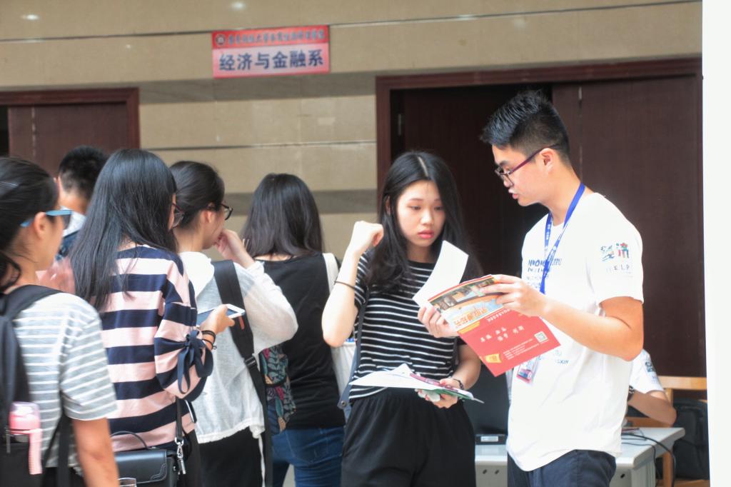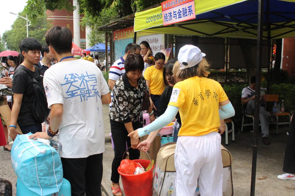 微笑是经济系的标志,奉献是经济系的精神。尽管在迎新工作中天公不作美,但老师们的身影随处可见,他们在现场指导工作,耐心地回答着新生、家长们提出的各种问题,为迎新工作的顺利开展保驾护航。
