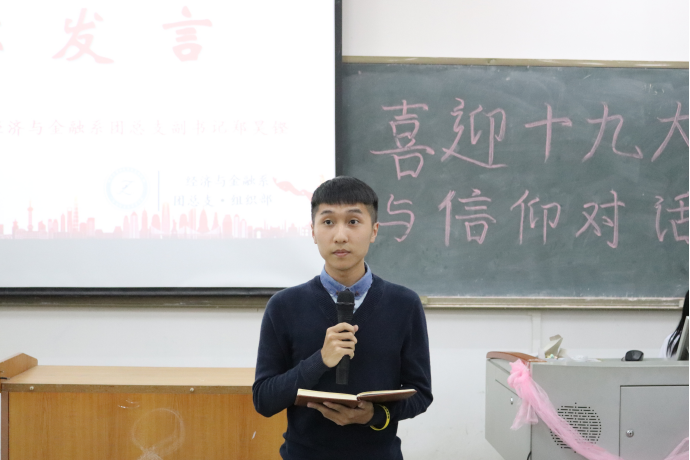 在新时代的召唤下,十九大如愿成功召开。在全面建设具有中国特色的社会主义决胜阶段,我系始终与党和国家共前进。在如此重要时刻,十月团组织生活大会在今晚隆重召开。大会以“喜迎十九大 与信仰对话”为主题,展示了我系对国家举行十九大的欢迎和对未来中国梦的信仰。