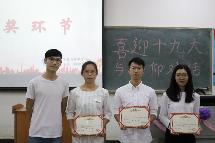 第二组由16金工2班,17国贸6班代表上台发言,小组前期进行多次宣传。其次还举行团生活动,包括嘻哈“十九大”,对话你我、主题联谊大会、“初心不减,信仰常伴”三项活动。在这些活动中,我们不禁感受到十九大所带的魅力。