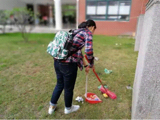 天气尽管炎热,但同学们热情却没有一丝减退,他们来到各个区域内,分工明确,井然有序。有的人手持钳子拾起地面的果皮纸屑,有的拿着扫帚清扫落叶、塑料袋,有的人用抹布抹着栏杆,有的清洁墙面广告,同学们没有一刻停下自己的脚步,用自己的实际行动为美化校园贡献了一份力量,也为同学们营造一个“文明、和谐、健康”的学习环境。