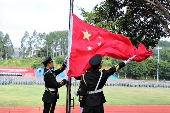 2020年9月21日上午8:00,广东财经大学华商学院2020级新生军训动员大会暨开学典礼在我校西区操场隆重举行。出席本次大会的领导和嘉宾有:华商教育集团董事长廖榕就董事长,广东财经大学副校长邹新月教授,广东财经大学华商学院执行校长郭银华教授,学校党委苏宁书记,增城武装部童胜雄中校,2020级新生军训团梁文财团长,华商学院副校长王列耀、副校长张捷、副校长陈美华、副校长钟森文、副校长王锦秀、副校长王力东,军训团领导小组成员及各二级院系负责人。本次军训动员大会由华商学院王锦秀副校长主持。