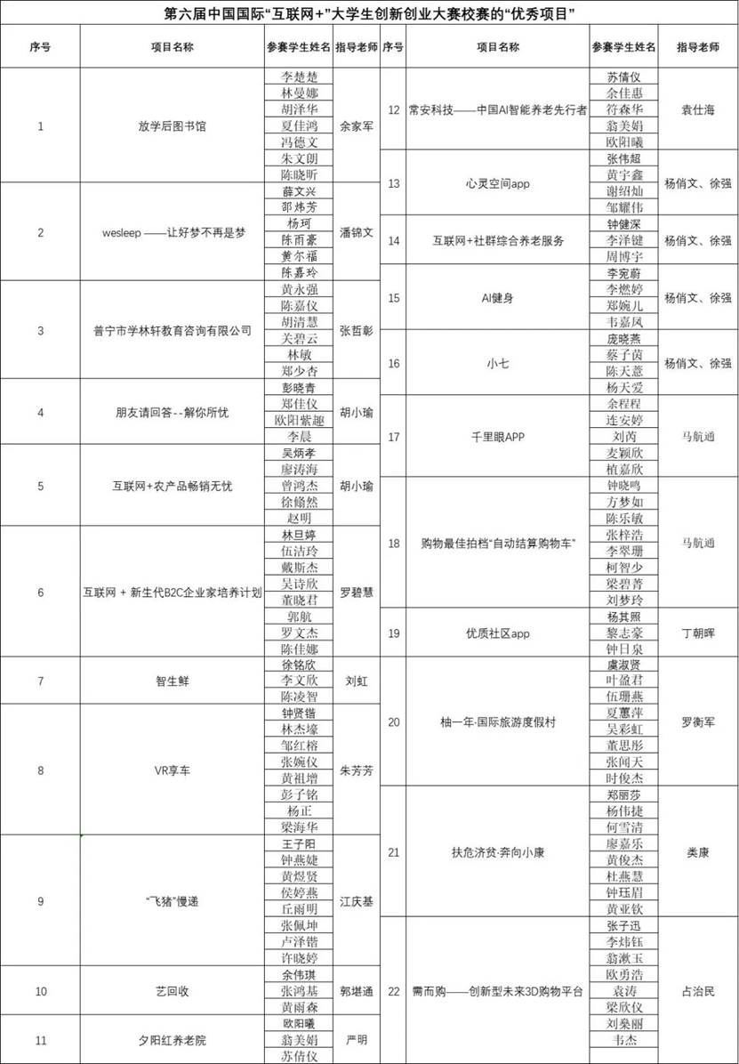 5月27日,我系启动了大赛的校级赛事,通过比赛,也涌现出了一批创新创业骨干指导教师和优秀学生。经校级海选、校级初赛、校级决赛等环节,我系共提交121个参赛项目,评选出校级奖项共24项。其中有2支队伍脱颖而出,荣获校级决赛的“铜奖”。有22支队伍荣获校赛“优秀项目”奖项,为经济与金融系争得了荣誉。
