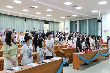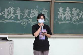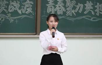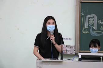 林丽玫师姐上台发言,她表示此次活动旨在让同学们感受抗疫一线勇士的无私与坚强,而疫情防控离不开每个人的努力,希望同学们在日常生活中可以积极参加团生活动,并能够尽自己的力量为疫情防控助力,最后她祝愿同学们能不受疫情的影响,保持积极乐观的心态开始新一学期的学习生活。