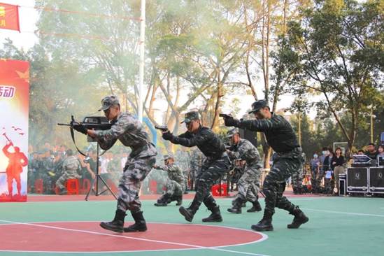 精彩的格斗技能表演,女子旗语操表演,战术动作表演,既给我们带来了一场视觉盛宴,同时也向同学们传授了一些防身自保的小技巧。