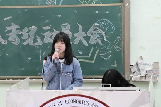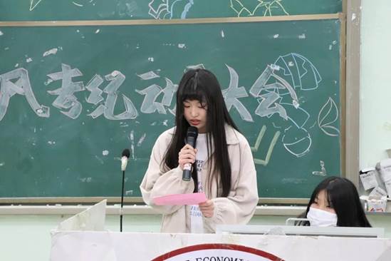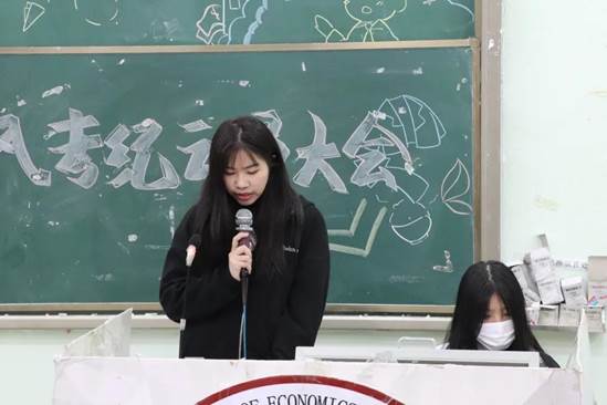 董凯泳师姐上台发言,她首先对团学·记本学期的工作进行了赞扬,并列举总结了本学期团总支学生会记者团的工作内容,随后她对接下来的期末考试进行了动员激励,希望大家认真备考,并祝愿大家取得优异成绩。