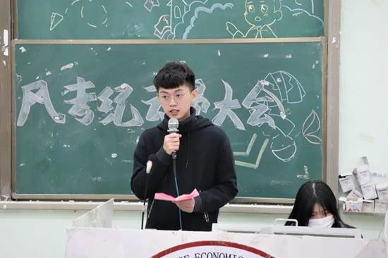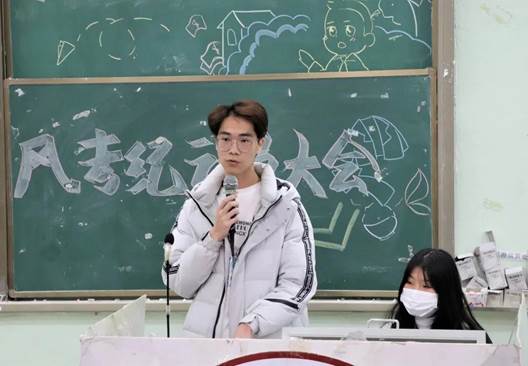 学术创新部干事郑志远上台发言,他讲到进入部门后,学到了许多软件技能与人际交往能力,同时也认识到许多新的朋友,在团学·记收获了温暖与进步。