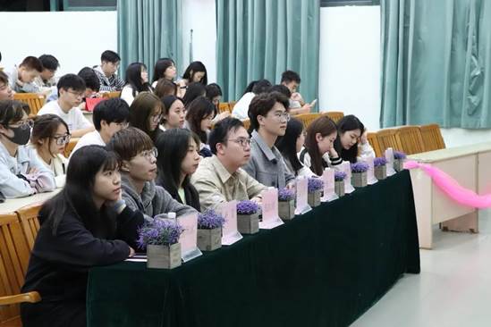 张文杰老师上台发言,他首先对组织成员过去一个学期的工作表示肯定,在上学期工作中我们秉承团总支学生会“全心全意为同学服务”和记者团“有态度,没难度”的宗旨,在众多活动中取得硕果累累并且树立了良好的形象。最后张文杰老师对各位干部及成员的未来工作充满憧憬,他希望大家要戒骄戒躁,端正态度,要拥有服务意识与奉献精神,并且还要处理好学习与工作之间的联系,同时要找准自己的坐标,摆正自己的位置。在新学期中,他祝愿大家可以以纯粹又热情、勇敢又无畏的心,执笔书写团学·记的新篇章,让精彩故事永远加载。