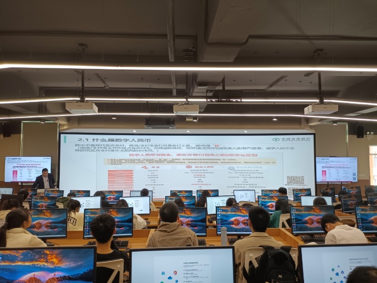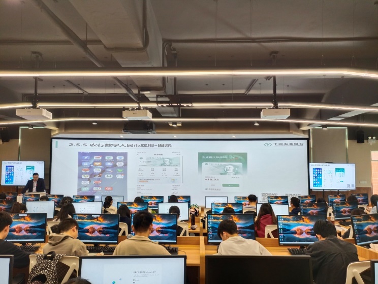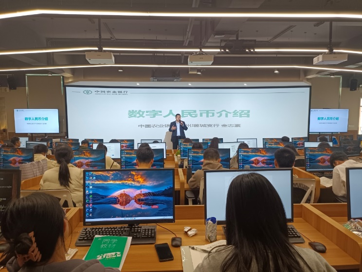 在此次共建活动中,中国农业银行增城支行金志豪总经理结合国家政策,分别以数字人民币的背景、开展研发试点的战略意义、数字人民币与现金或传统电子货币的区别与联系、数字人民币的使用方式及场景等方面向同学们普及数字人民币的金融知识。