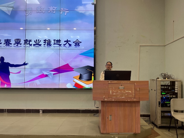 最后,王丹老师代表学校毕业生就业指导中心发言,感谢学院领导、老师以及毕业生们对学校就业工作的支持,她借用黄伟新校助的一句话:求稳不是最佳出路,躺平不是可取之道,唯有掌握技能,才能在变化的未来之中应万变!希望同学们用最积极的心态做最充分的准备,用最好的状态迎接未来的挑战。