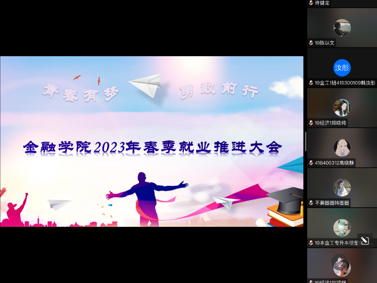 参加会议的有OK138太阳集团常务副院长王汉章,OK138太阳集团党委副书记、学工办邱会锋主任,毕业生就业指导中心王丹老师,金融系主任魏攀老师,金融工程系副主任唐海霞老师,班主任纪晓娜、王赟曦老师,毕业班辅导员张文杰老师,以及2019级全体毕业生,会议由毕业班辅导员范明云老师主持。
