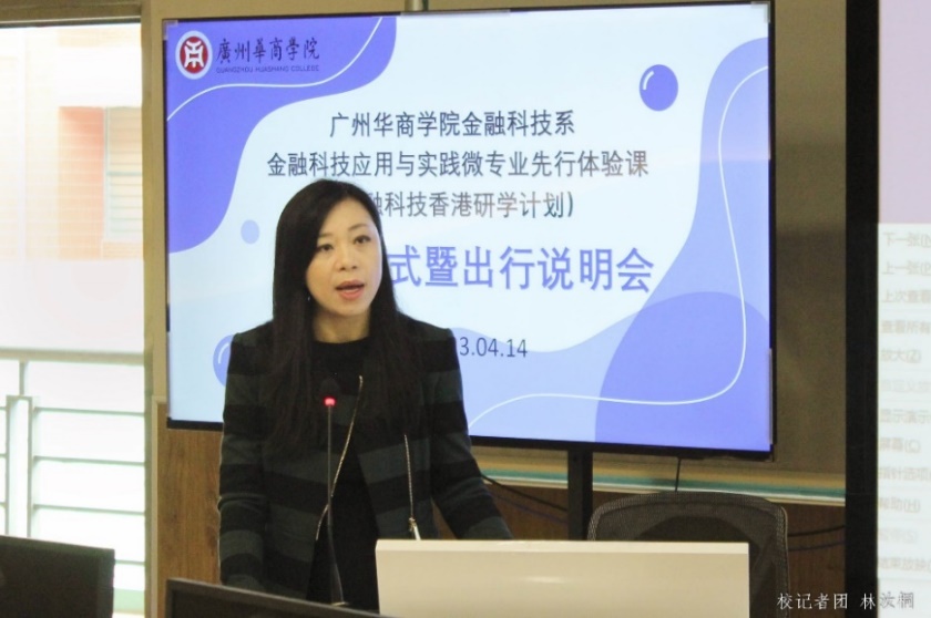 活动伊始,华商教育集团总裁廖伊曼女士表示很开心能出席本次活动,指出香港作为国际金融中心在全球金融科技领域的业态发展与引领地位,并从大湾区、学校两个层面高度评价了本次活动的意义与价值,勉励赴港师生把握研学机会,助力大湾区建设与发展。