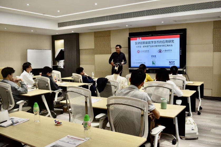 下午,同学们再次来到位于维多利亚港畔的大湾区商学院。智慧城市联盟金融科技委员会主席(SCC Fintech Committee Chairman)陈家豪教授为同学们讲授了《区块链赋能数字货币的应用研究——元宇宙、数字资产及央行数字货币的三角关系》。